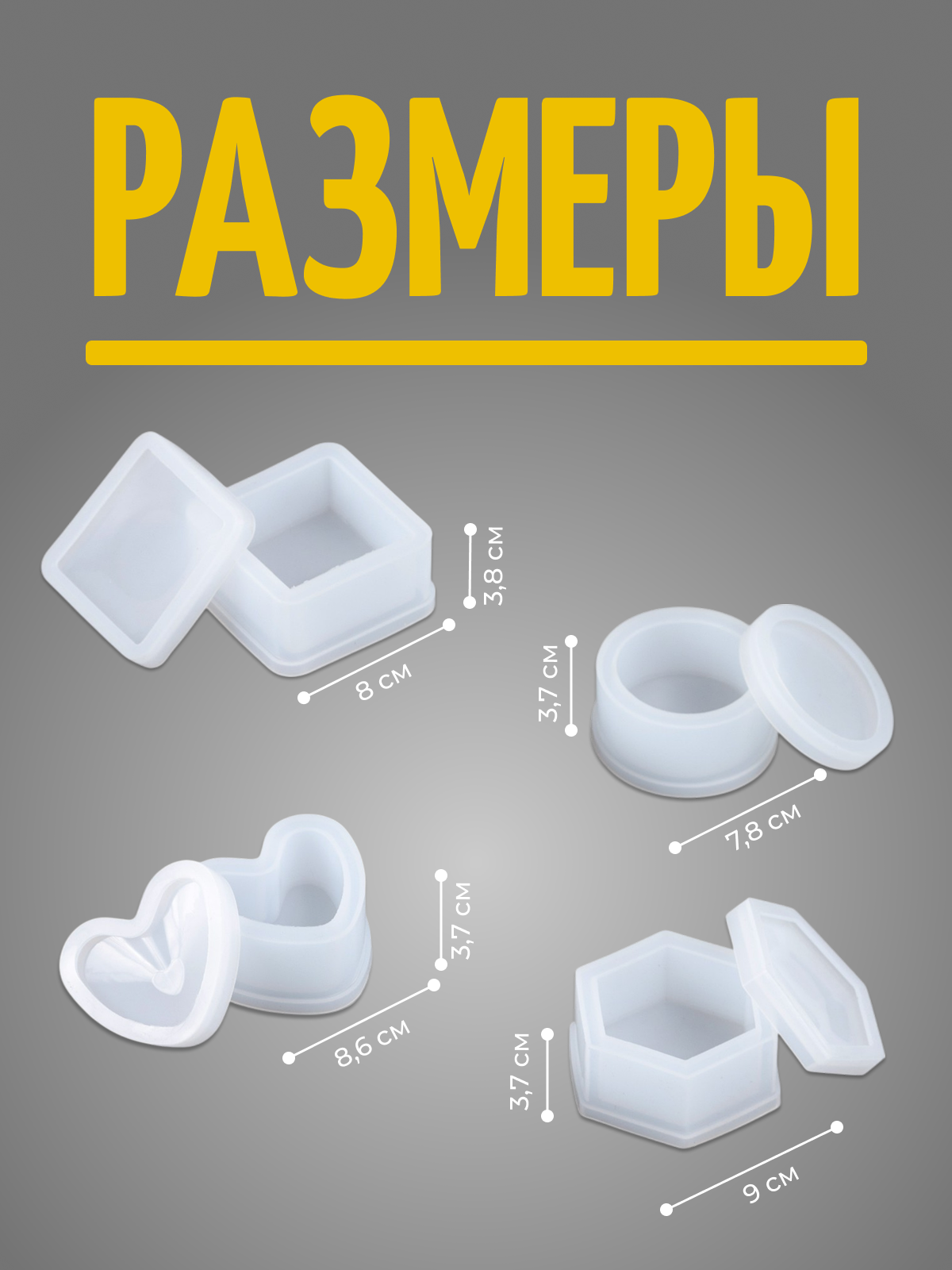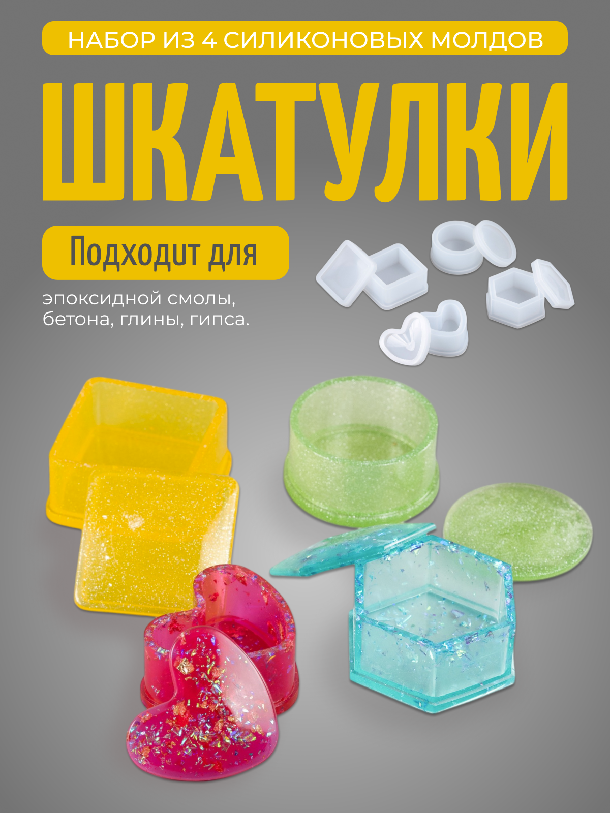 Набор силиконовых молдов для гипса, эпоксидной смолы, 4 шкатулки, COLOR Si интересное: