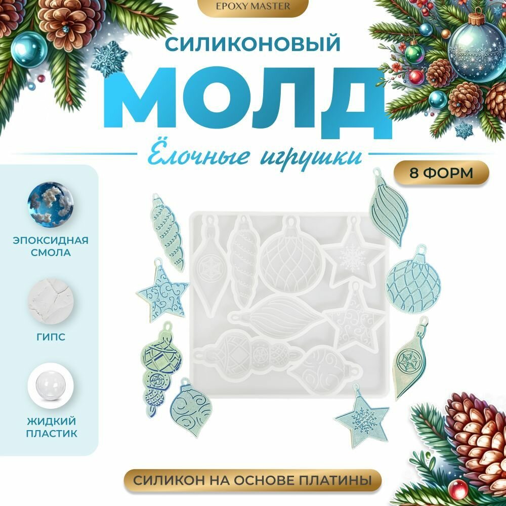 Силиконовый молд Набор елочных игрушек для эпоксидной смолы EPOXYMASTER, новогодние украшения своими руками