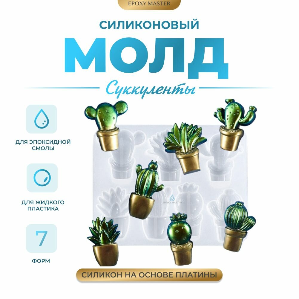 Силиконовый молд для эпоксидной смолы EPOXYMASTER Суккуленты, 15х12см интересное: