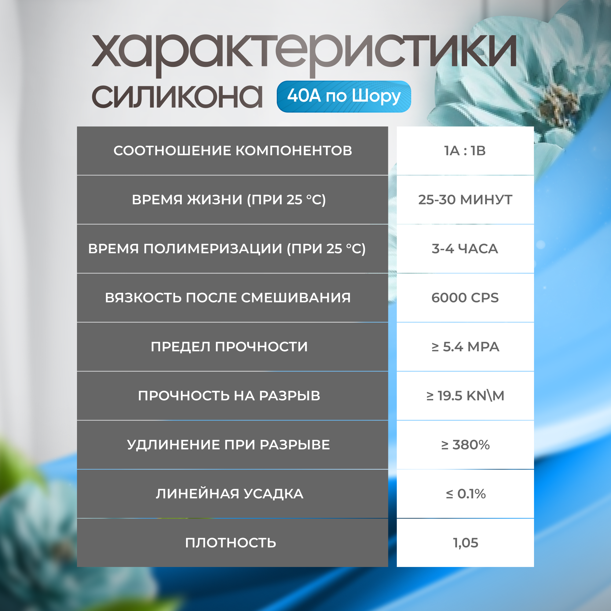 Силикон для форм на основе платины EpoxyMaster, 40A (6000 грамм)