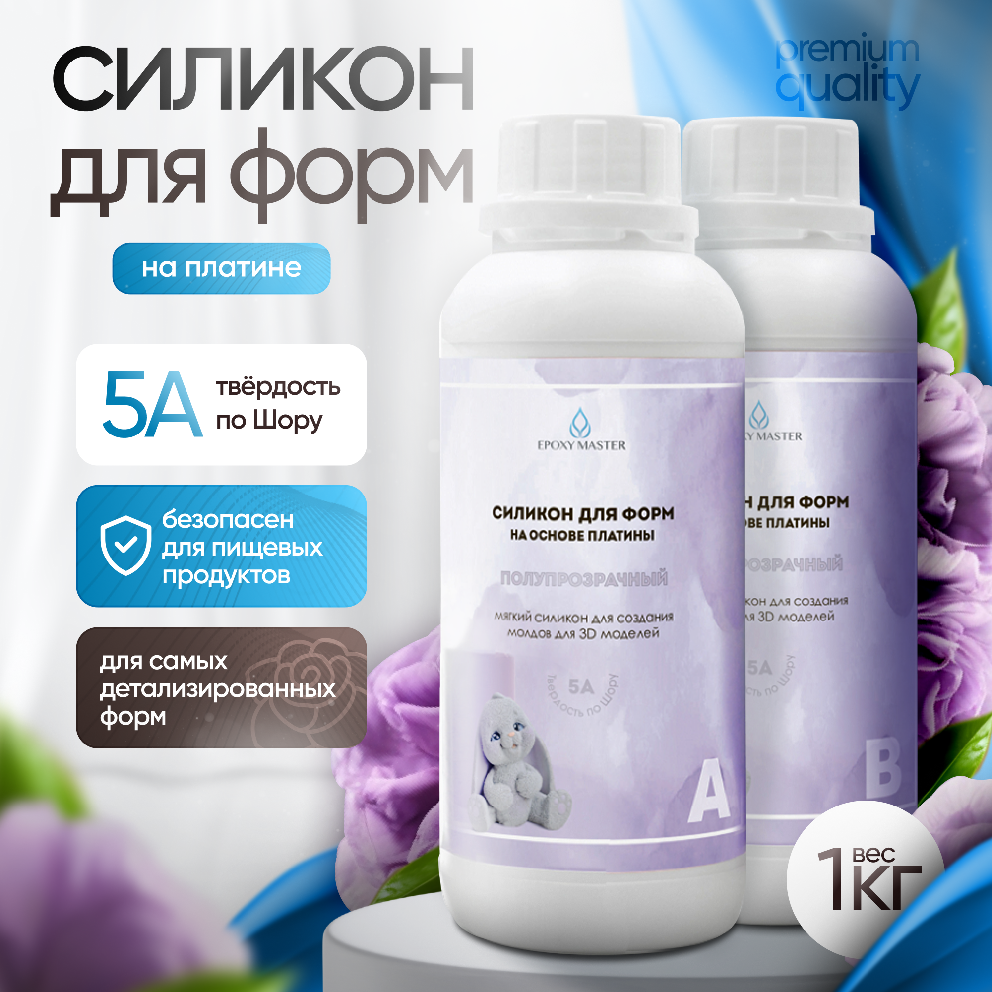 Силикон для форм на основе платины EpoxyMaster, 40A (1000 грамм)