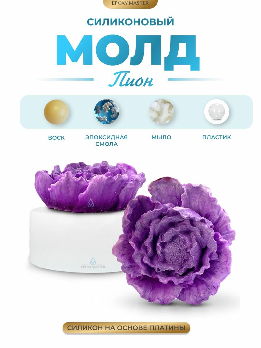 Силиконовая форма для шоколада, выпечки, льда, мыла EPOXYMASTER Пион, 6,2х5,8см интересное: