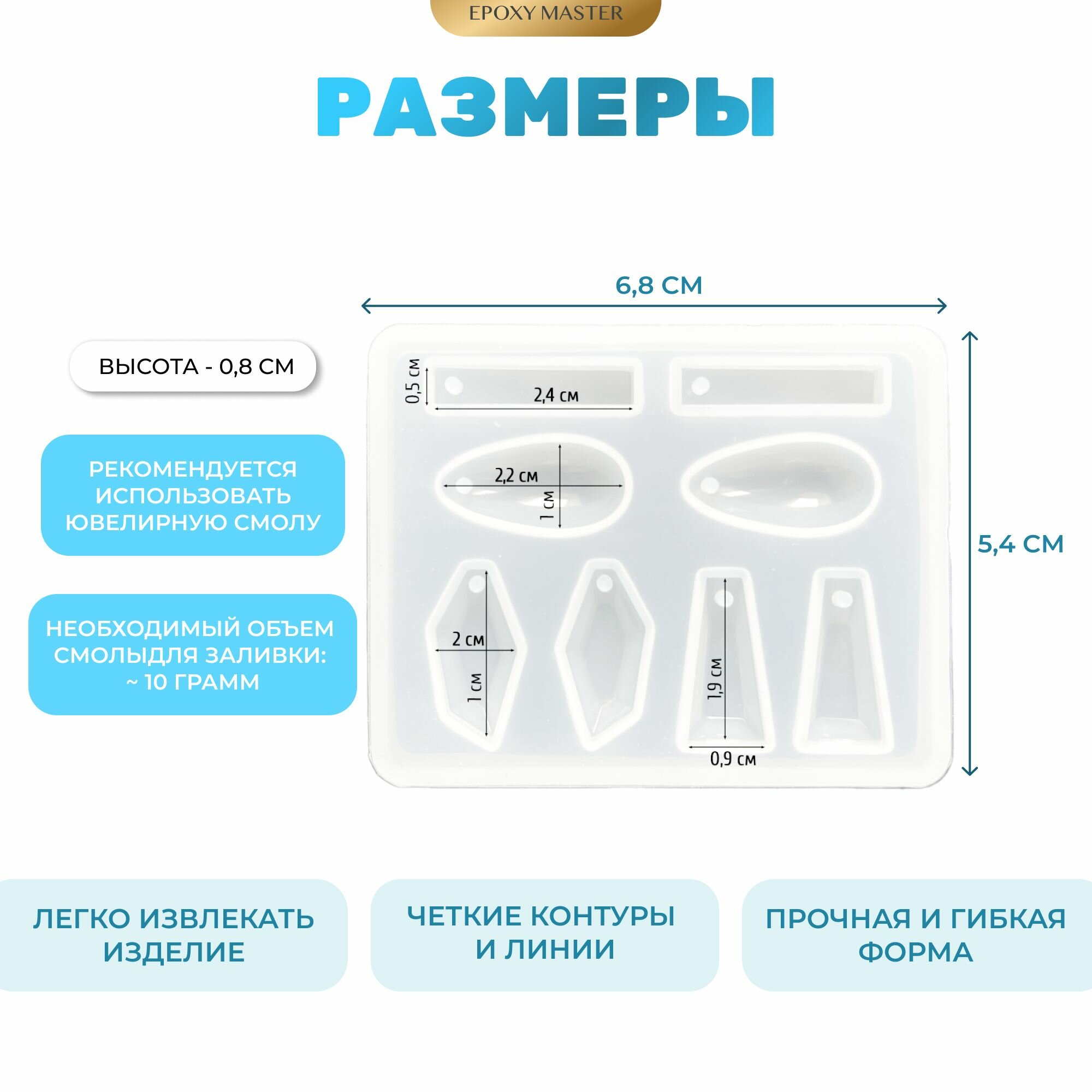 Силиконовый молд для сережек и кулонов, 7х5 см / Силиконовая форма для эпоксидной смолы для создания украшений интересное: