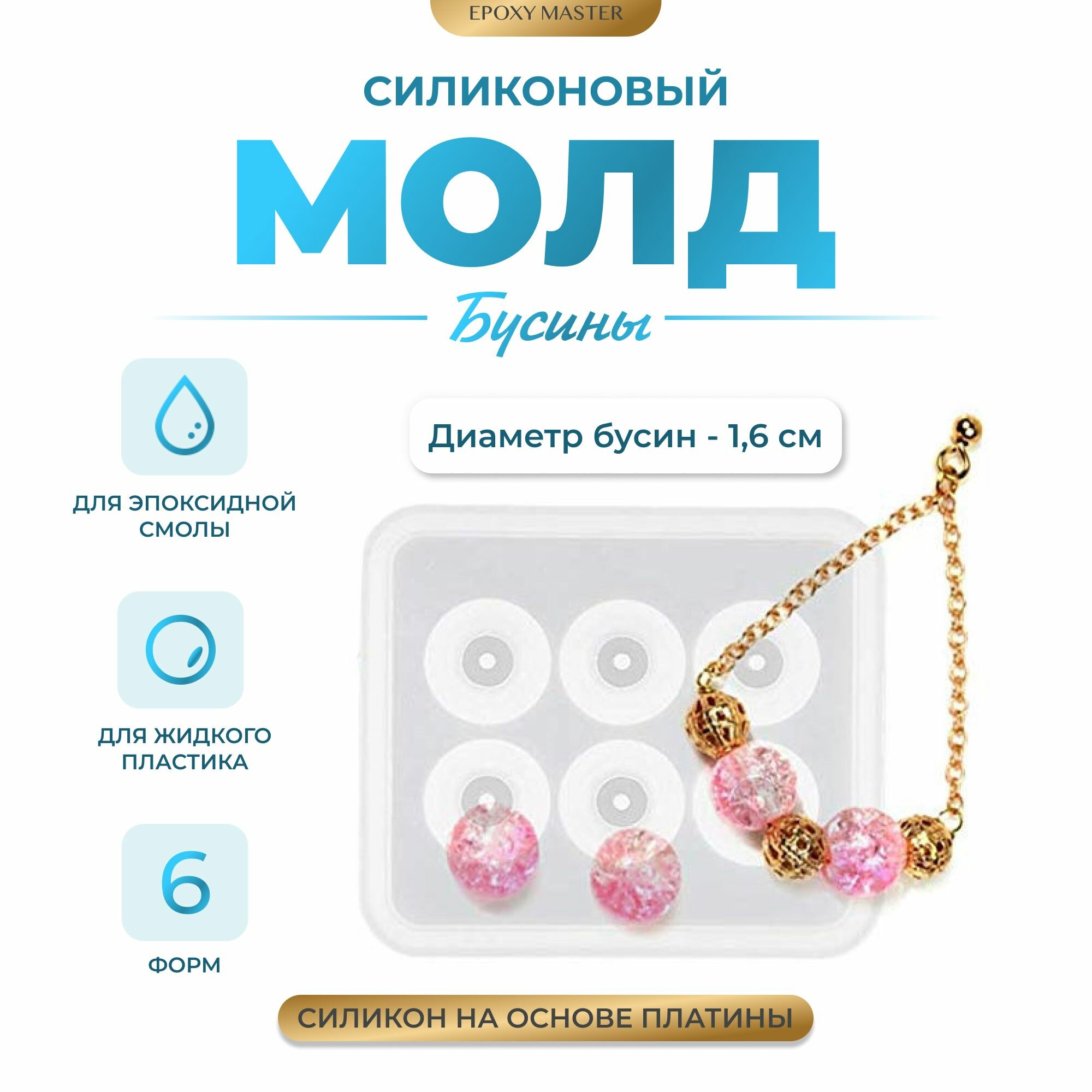 Купить Силиконовый молд для круглых бусин / Силиконовая форма для эпоксидной смолы