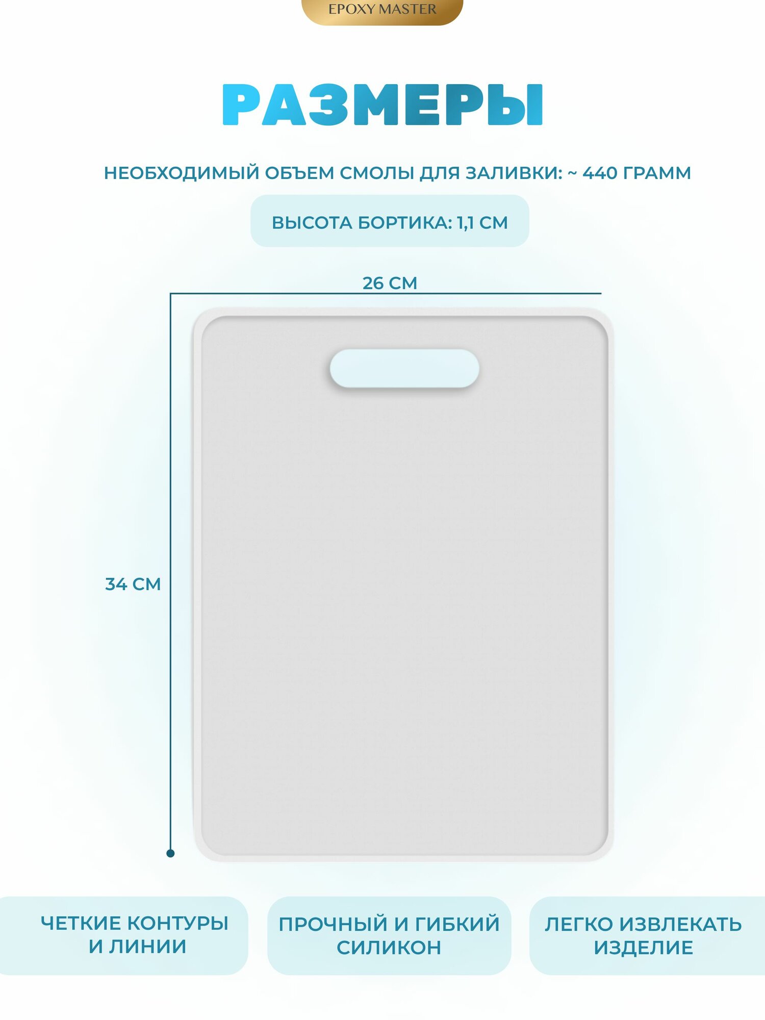 Силиконовый молд для эпоксидной смолы Разделочная доска, 34х26 см EPOXYMASTER интересное: