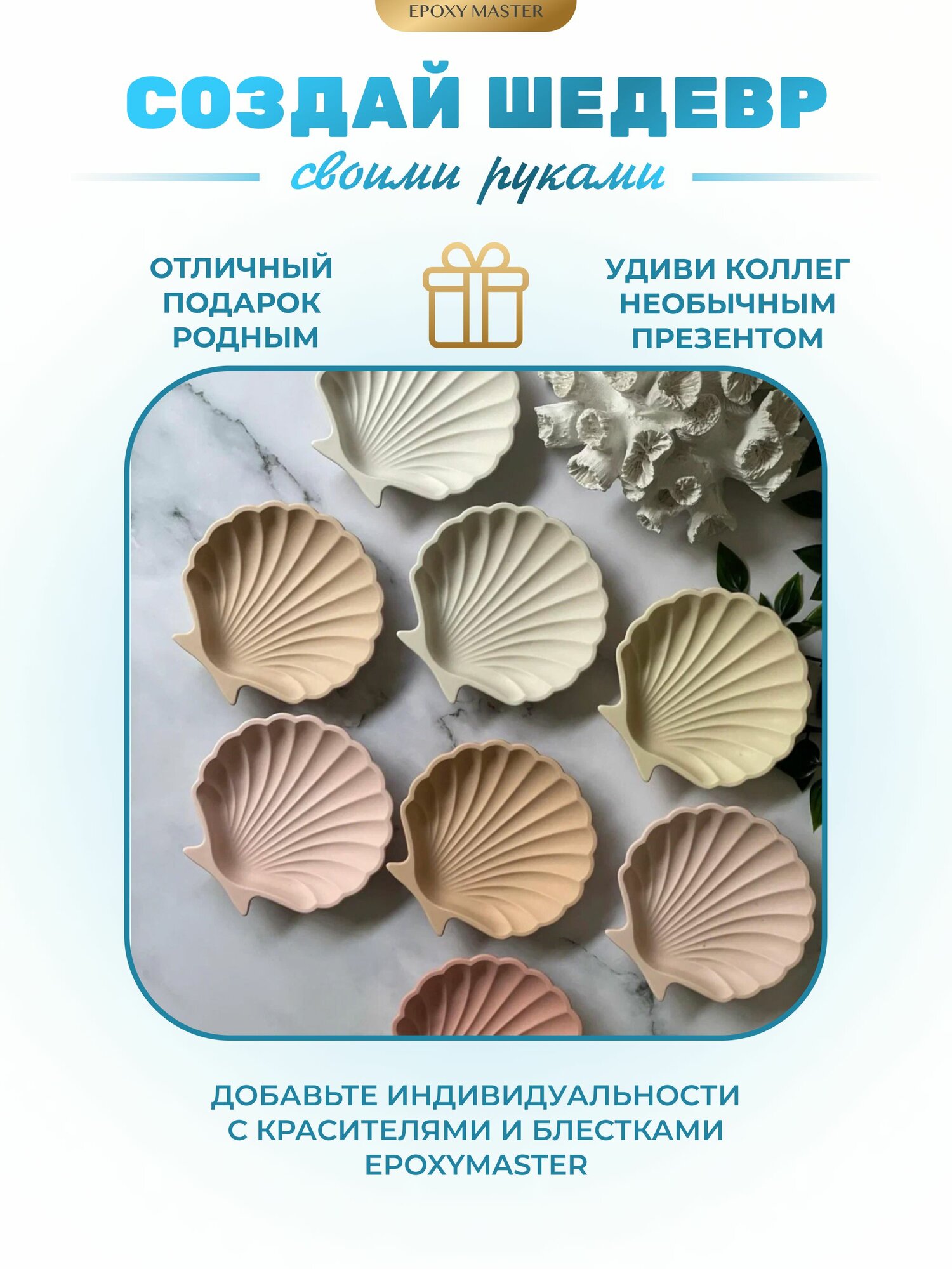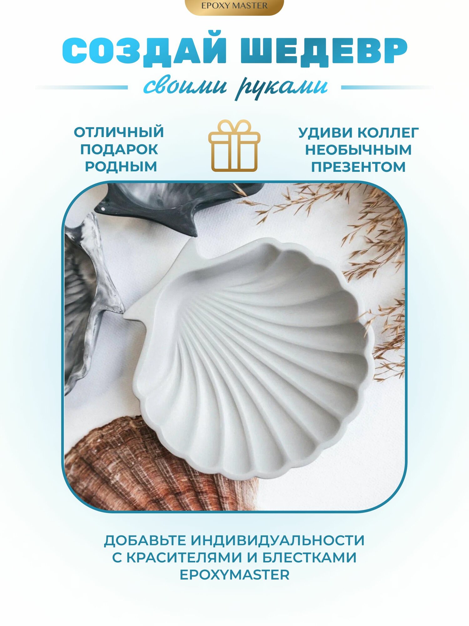 Силиконовый молд для эпоксидной смолы EPOXYMASTER Блюдце морская ракушка, 11х11 см интересное: