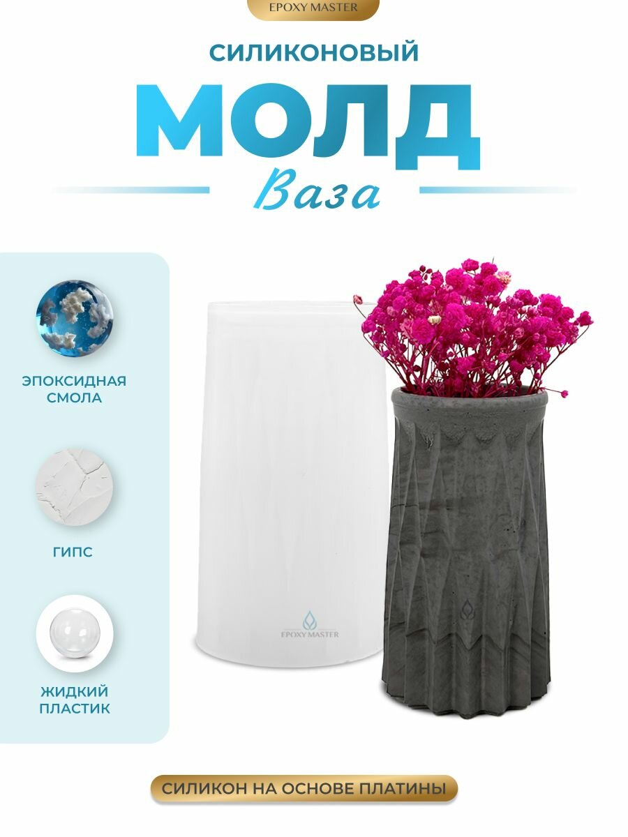 Силиконовый молд для эпоксидной смолы EPOXYMASTER Ваза ребристая, h10,5см интересное: