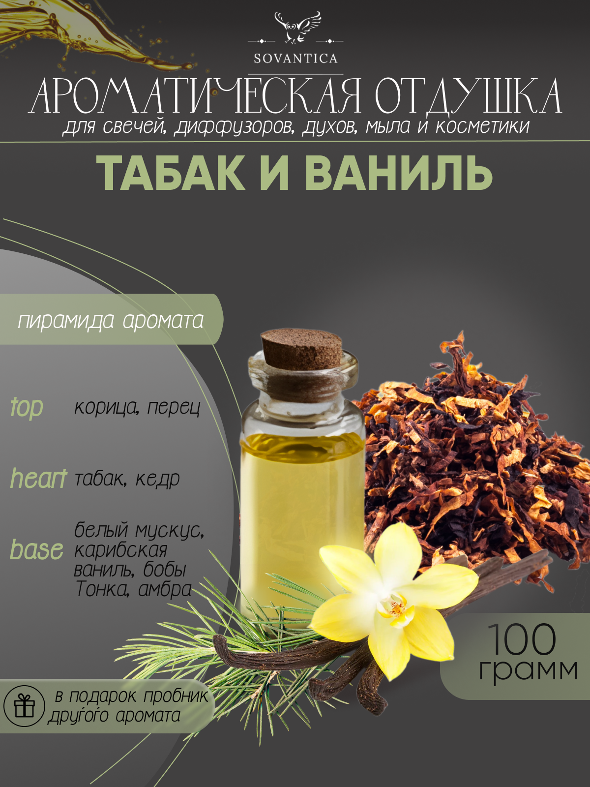 Купить Ароматическая отдушка Табак и ваниль 100гр Sovantica Кема Клаб
