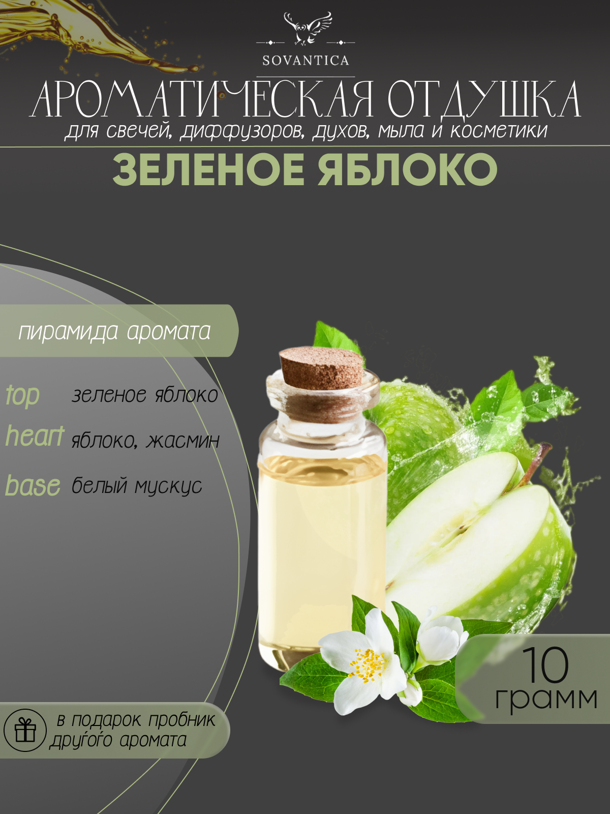 Ароматическая отдушка Зеленое яблоко 10гр Sovantica Кема Клаб интересное: