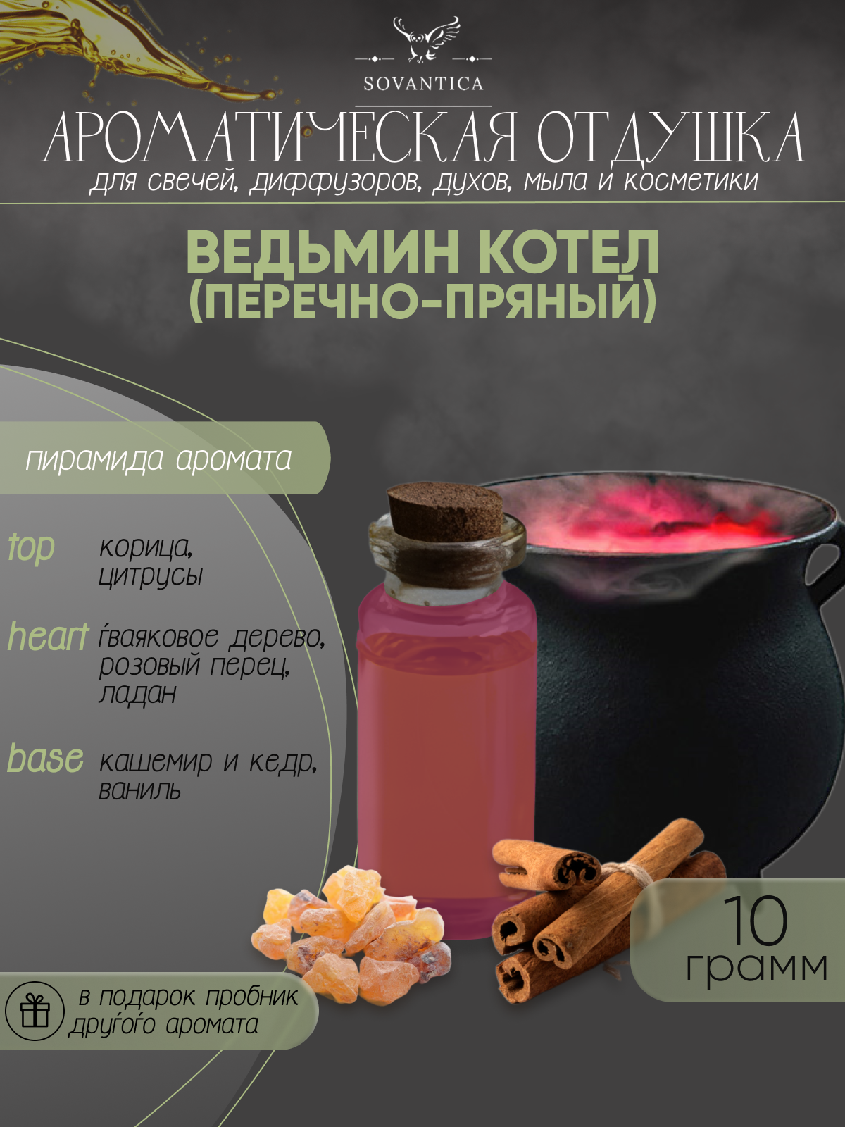 Ароматическая отдушка Ведьмин котёл (перечно-пряный) 10гр Sovantica Кема Клаб интересное: