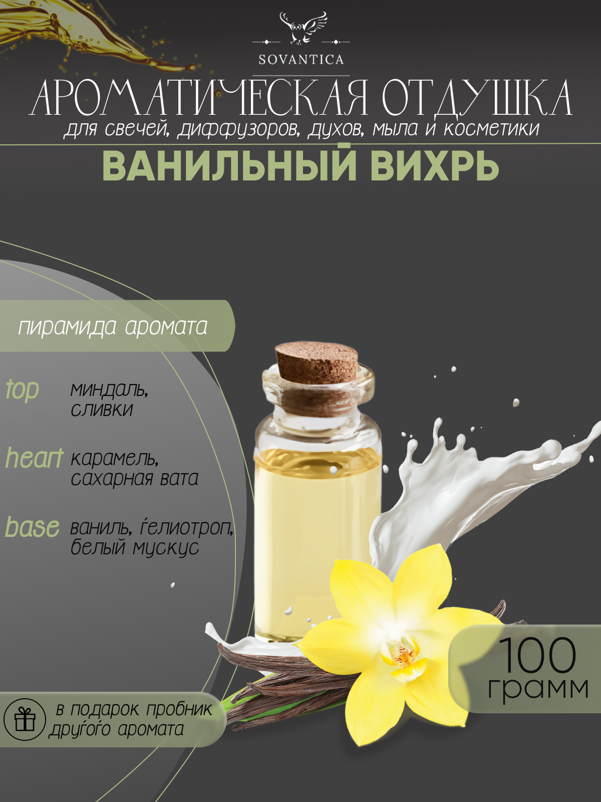 Ароматическая отдушка Ванильный вихрь 100гр Sovantica от бренда Кема Клаб интересное: