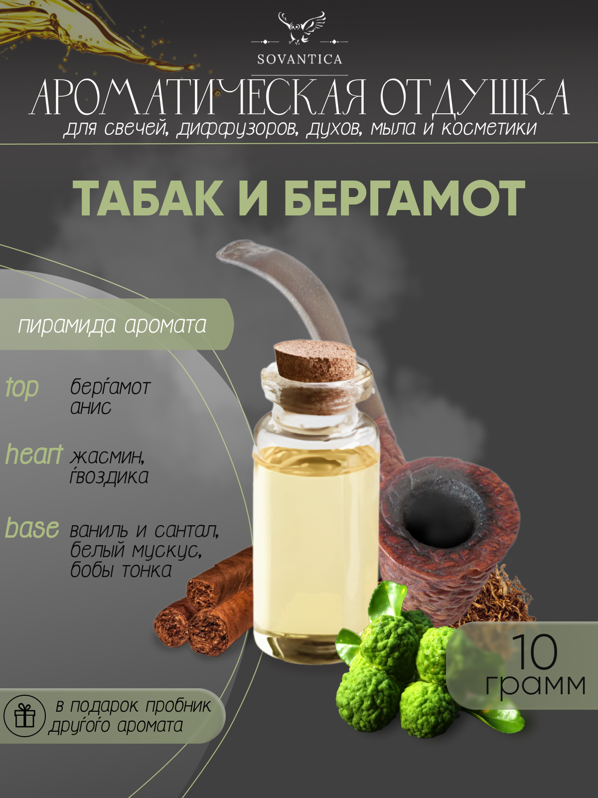 Ароматическая отдушка Табак и бергамот 10гр Sovantica Кема Клаб интересное: