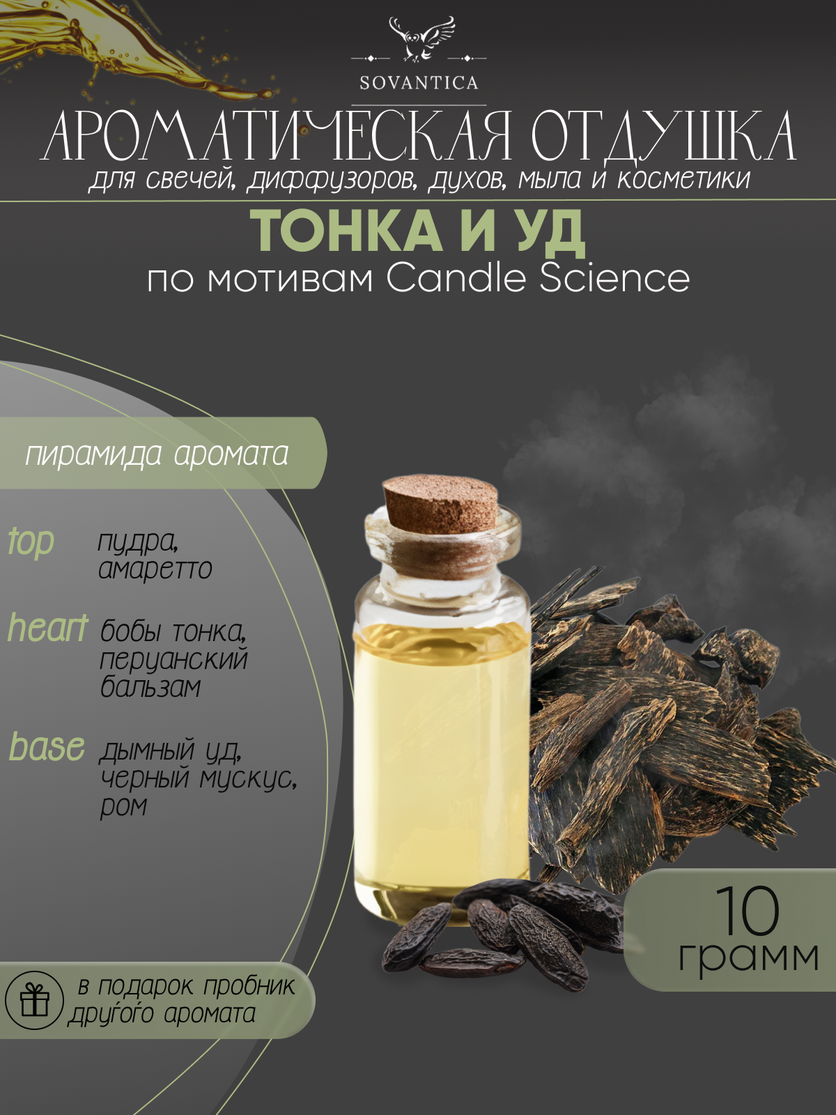 Ароматическая отдушка Тонка и уд 10гр Sovantica от бренда Кема Клаб интересное: