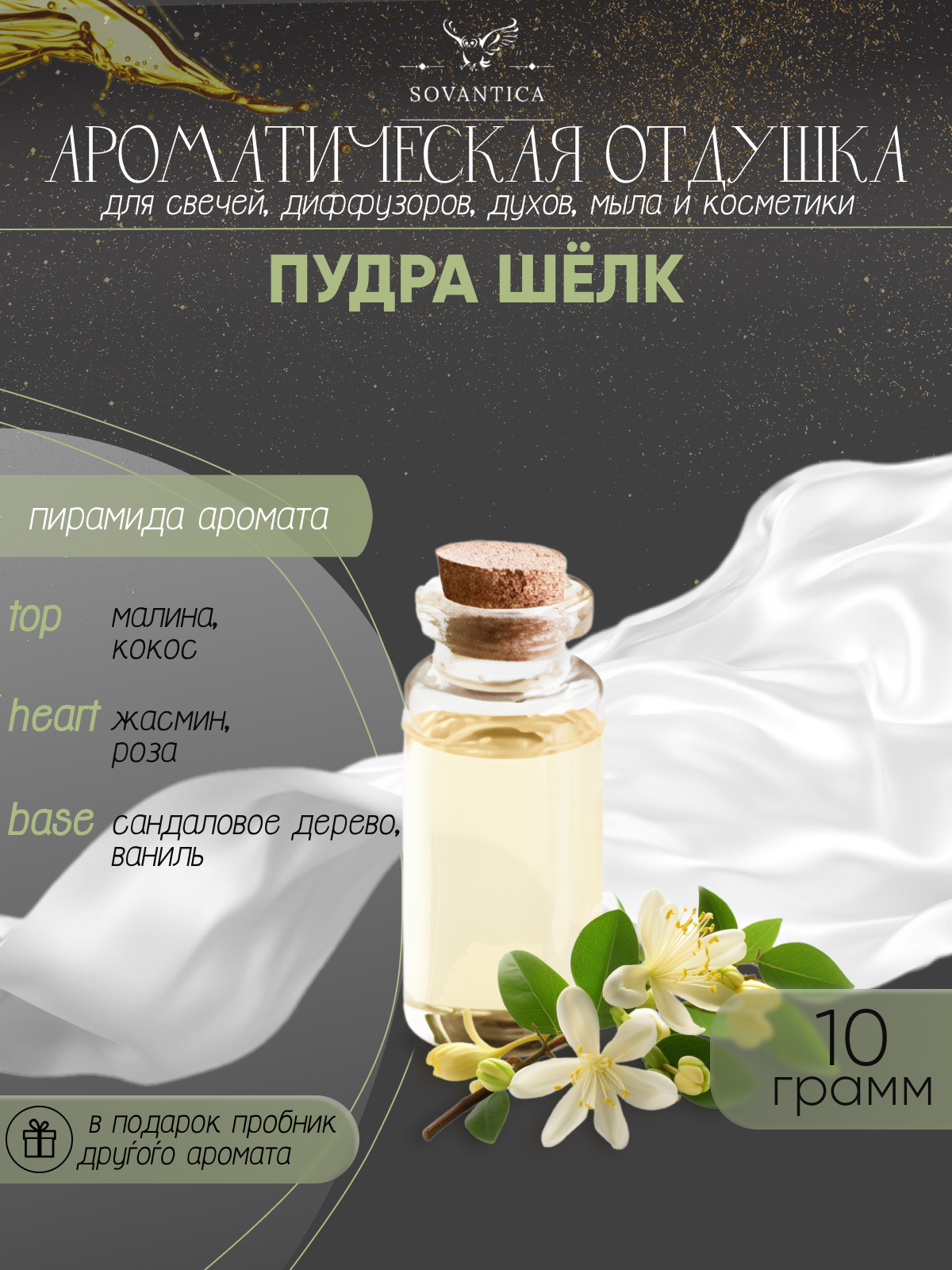 Ароматическая отдушка Пудра шёлк 10гр Sovantica от бренда Кема Клаб интересное: