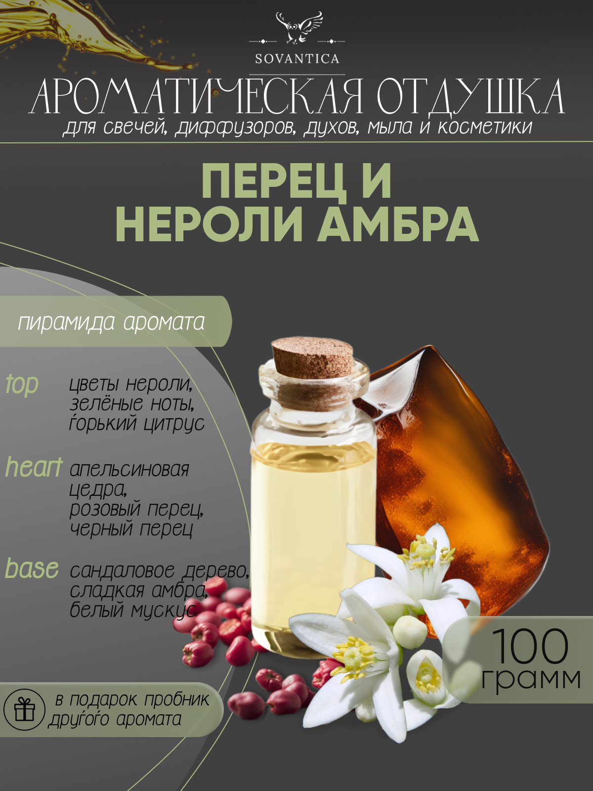 Ароматическая отдушка Перец и нероли амбра 100гр Sovantica Кема Клаб интересное: