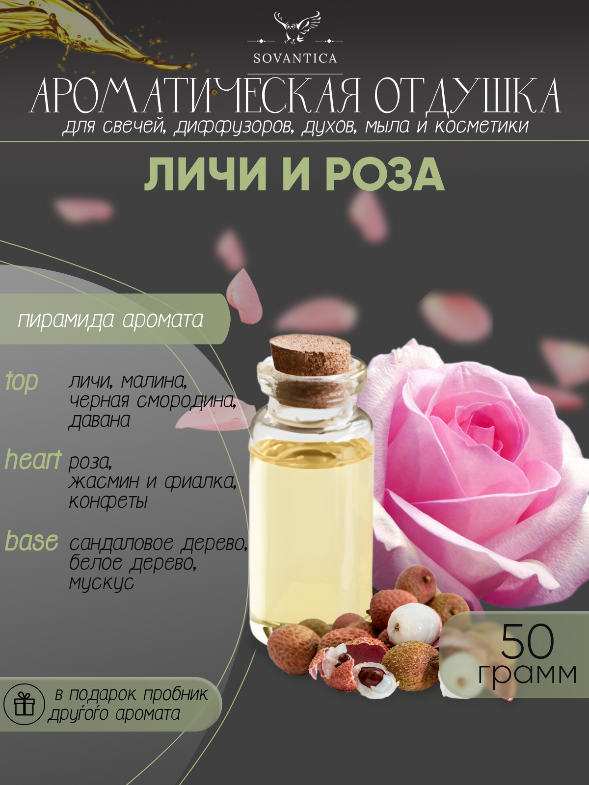 Купить Ароматическая отдушка Личи и роза 50гр Sovantica от бренда Кема Клаб