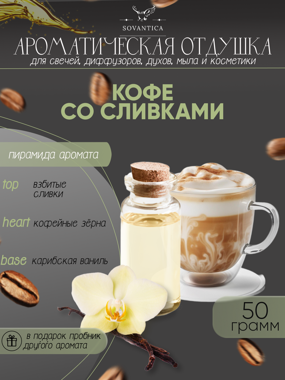 Ароматическая отдушка Кофе со сливками 10гр Sovantica Кема Клаб