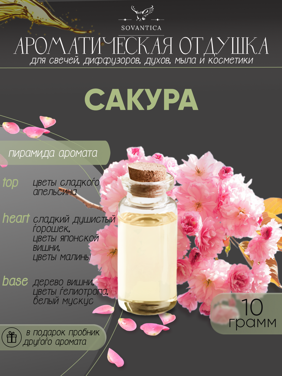 Купить Ароматическая отдушка Сакура 10гр Sovantica от бренда Кема Клаб