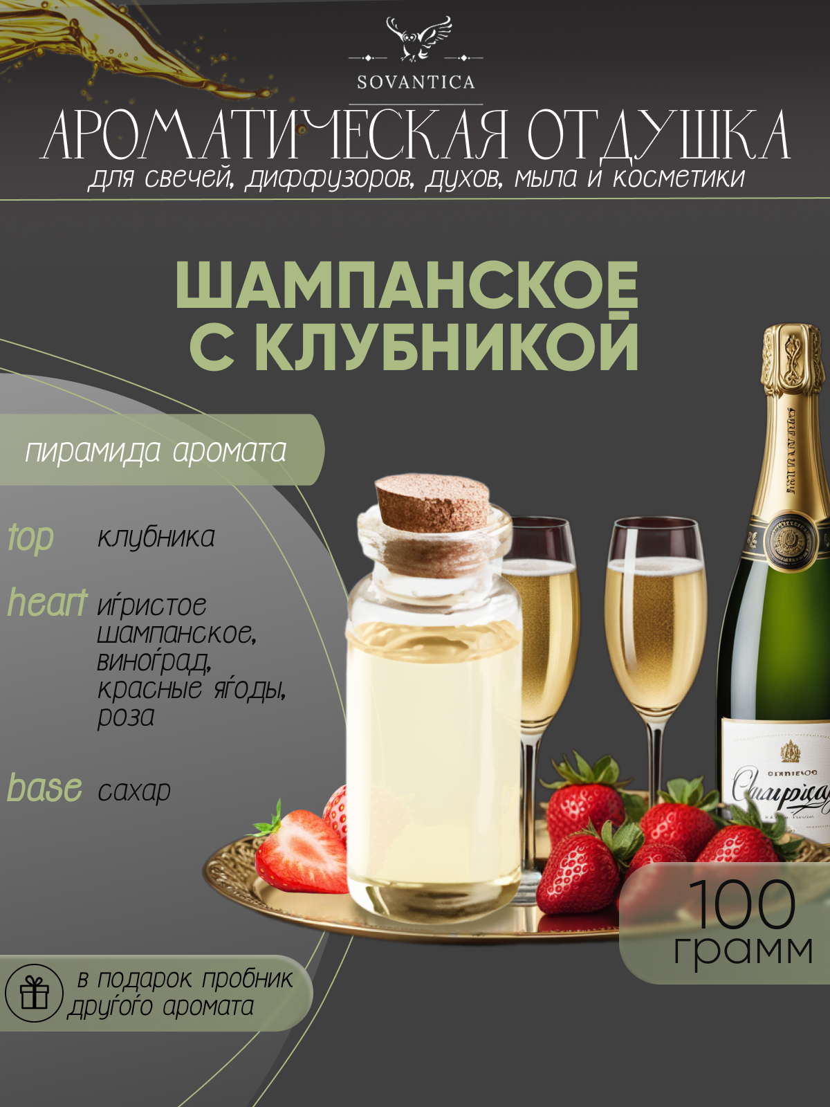 Ароматическая отдушка Шампанское с клубникой 100гр Sovantica Кема Клаб интересное: