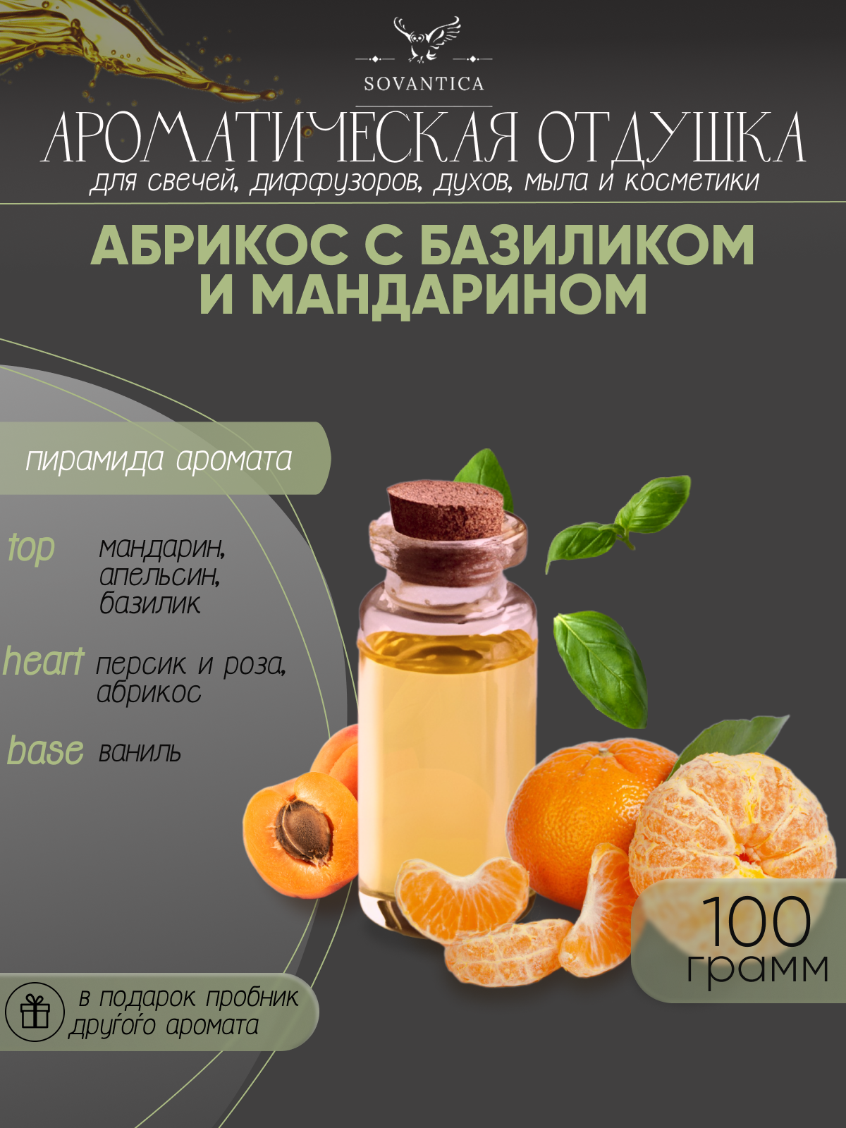 Ароматическая отдушка Абрикос с базиликом и мандарином 10гр Sovantica
