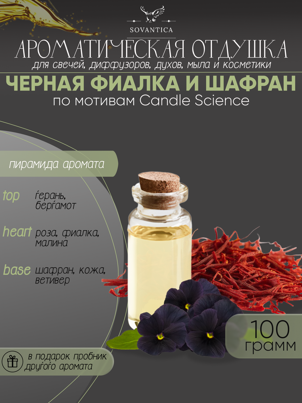 Купить Ароматическая отдушка Чёрная фиалка и шафран 100гр Sovantica от бренда Кема Клаб