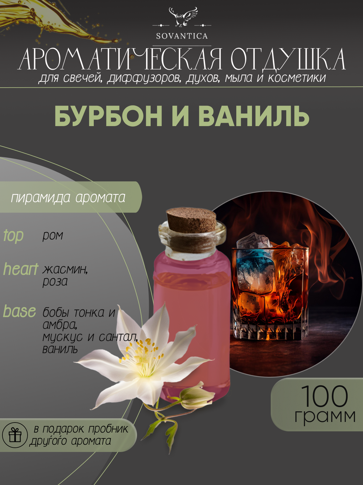 Купить Ароматическая отдушка Бурбон и ваниль 100гр Sovantica от бренда Кема Клаб