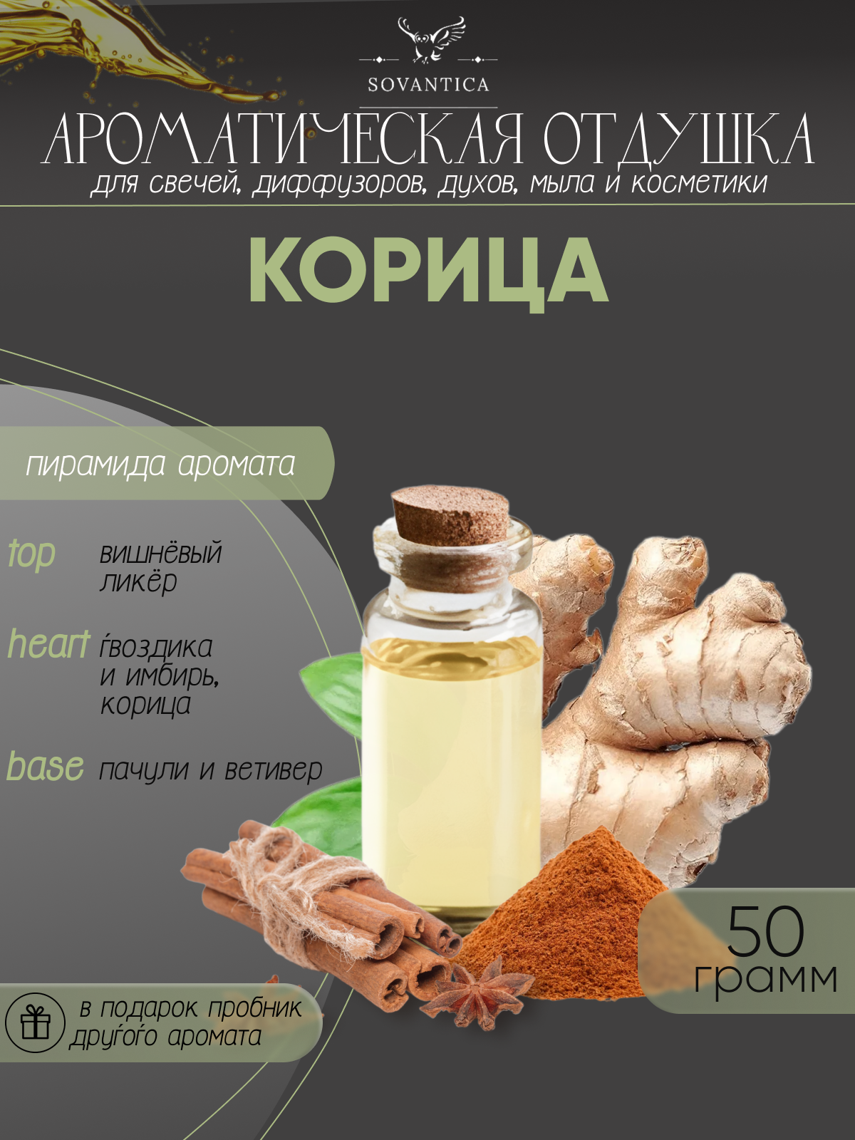 Купить Ароматическая отдушка Корица 50гр Sovantica от бренда Кема Клаб