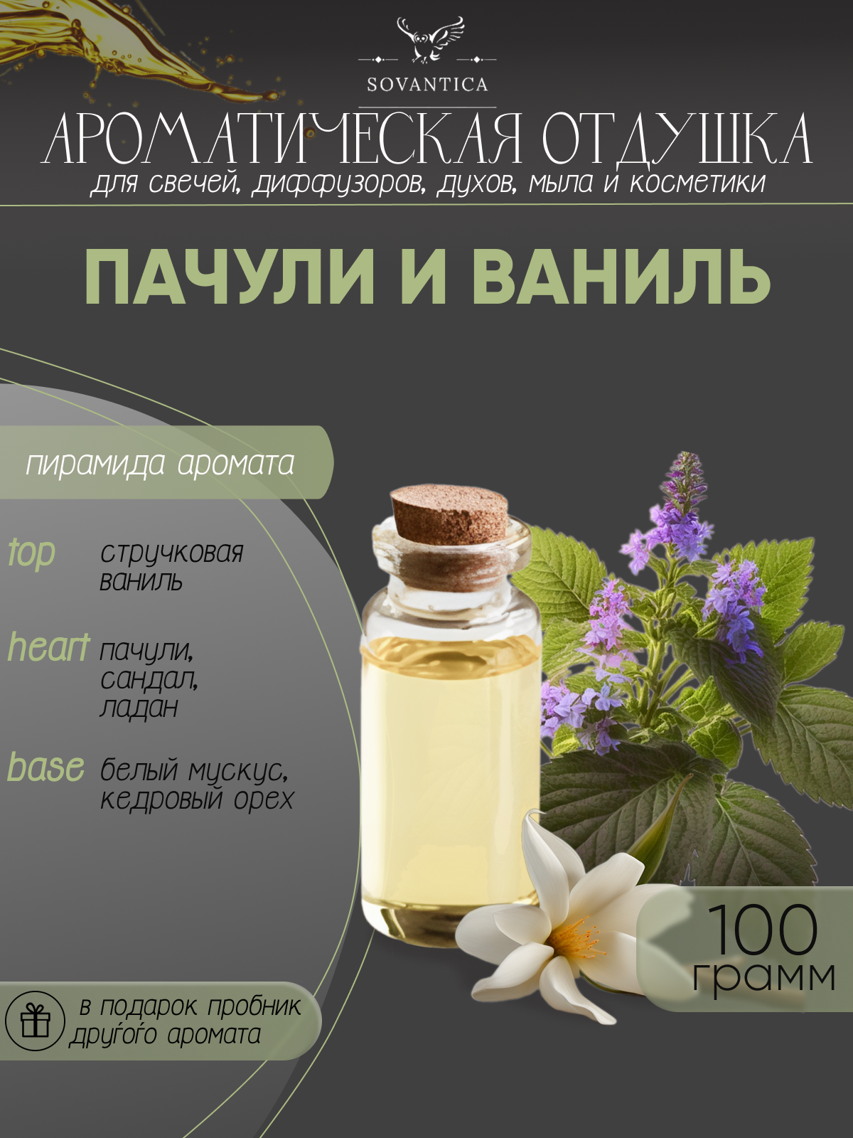 Купить Ароматическая отдушка Пачули и ваниль 100гр Sovantica Кема Клаб
