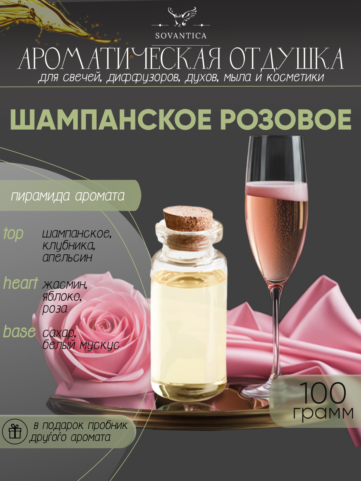 Ароматическая отдушка Шампанское розовое 100гр Sovantica Кема Клаб интересное: