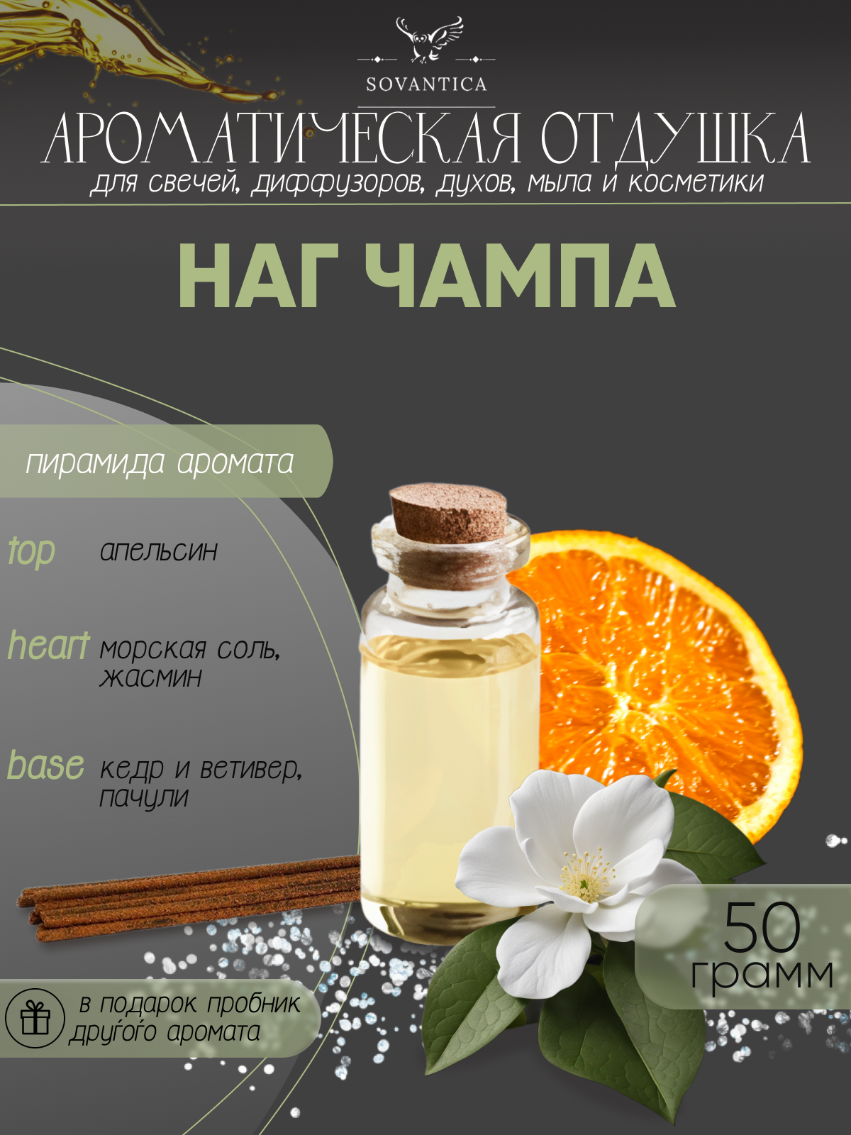 Ароматическая отдушка "Наг чампа" 50гр , Sovantica Кема Клаб интересное: