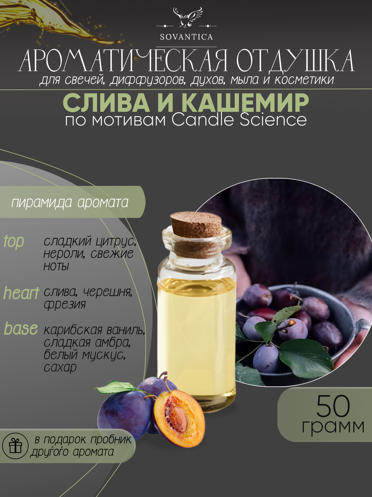 Ароматическая отдушка Слива и кашемир 50гр Sovantica Кема Клаб интересное: