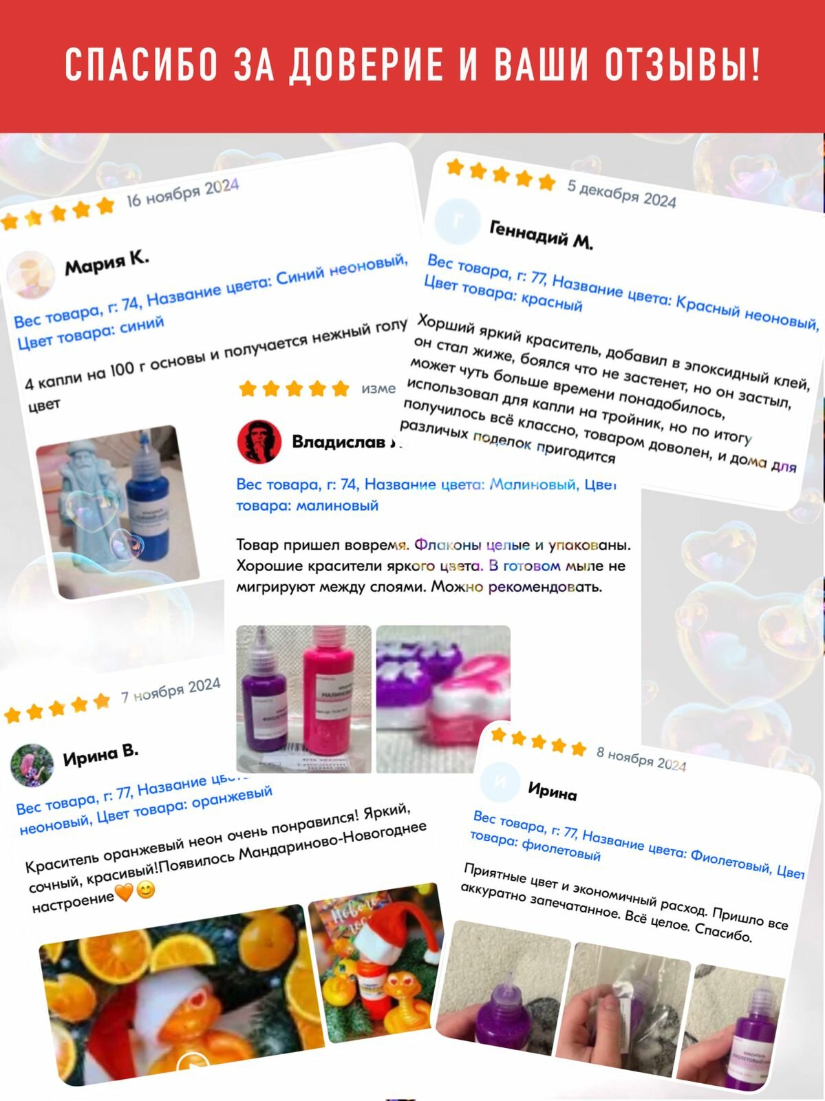 Ниже Вы можете прочитать отзывы на Краситель гелевый для мыла и косметики, ознакомится с подробными характеристиками, посмотреть интересные обзоры и фотографии на Краситель гелевый для мыла и косметики.