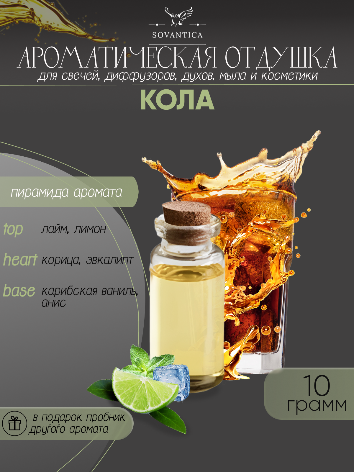 Купить Ароматическая отдушка Кола 10гр Sovantica от бренда Кема Клаб