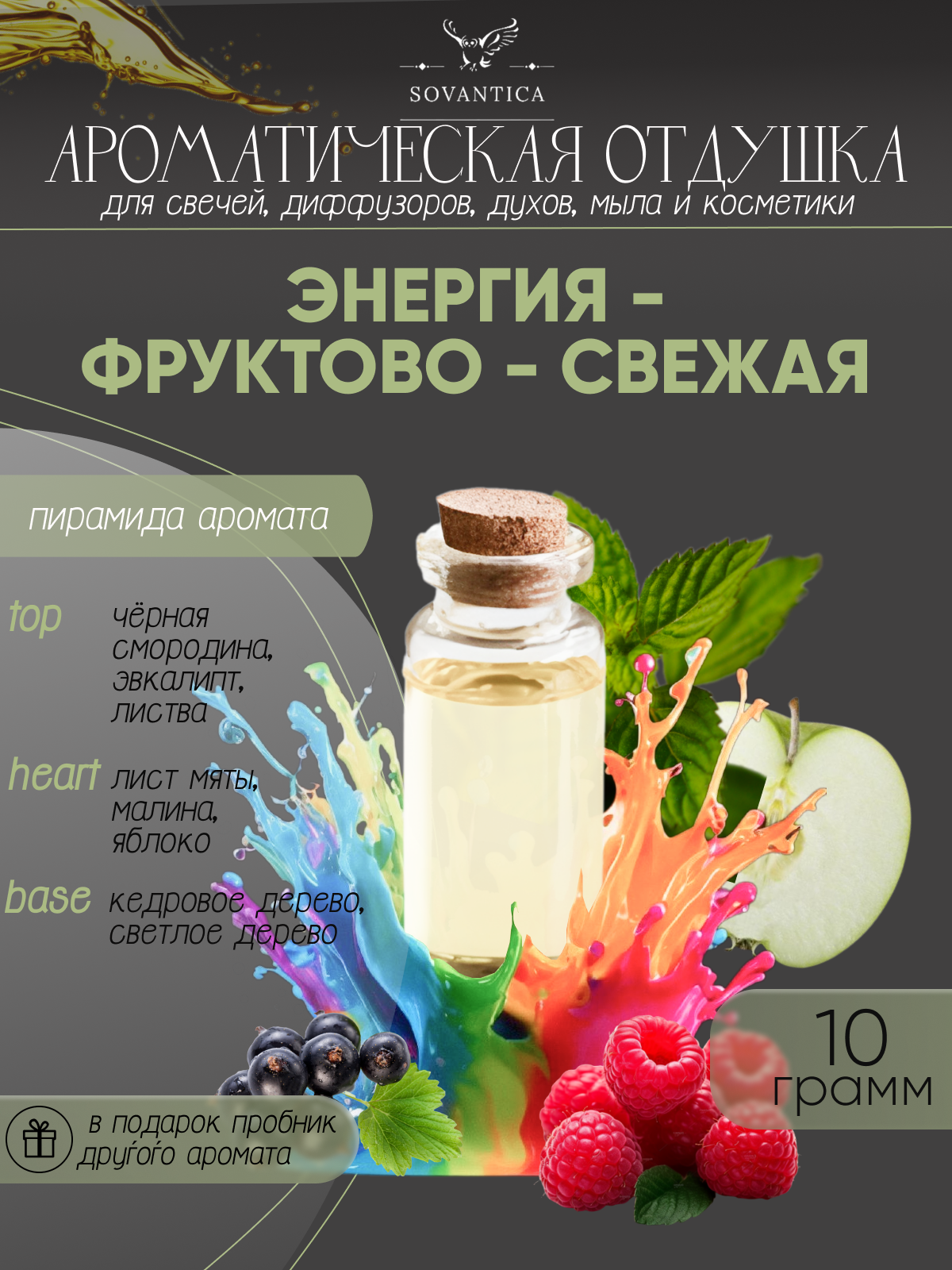 Ароматическая отдушка Энергия фруктово-свежая 10гр Sovantica Кема Клаб интересное: