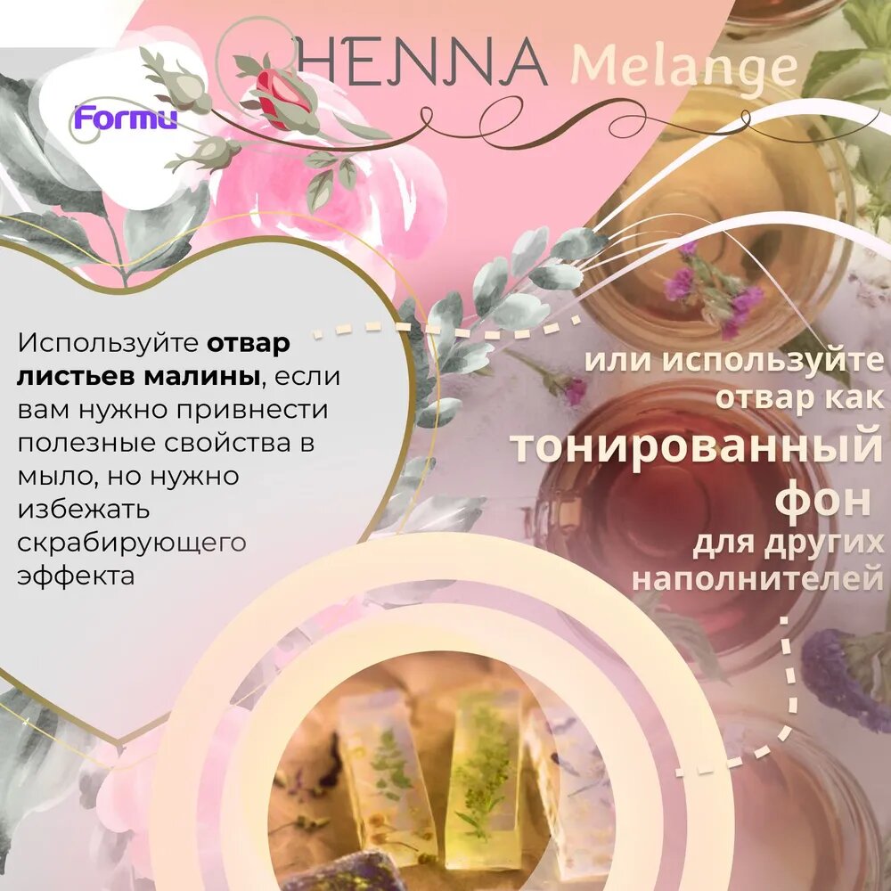 ЛИСТЬЯ МАЛИНЫ Formu HENNA Melange - добавка для мыла, 1500 мл, 3 в 1 (микроэлементы + краситель + скраб для мыловарения) интересное: