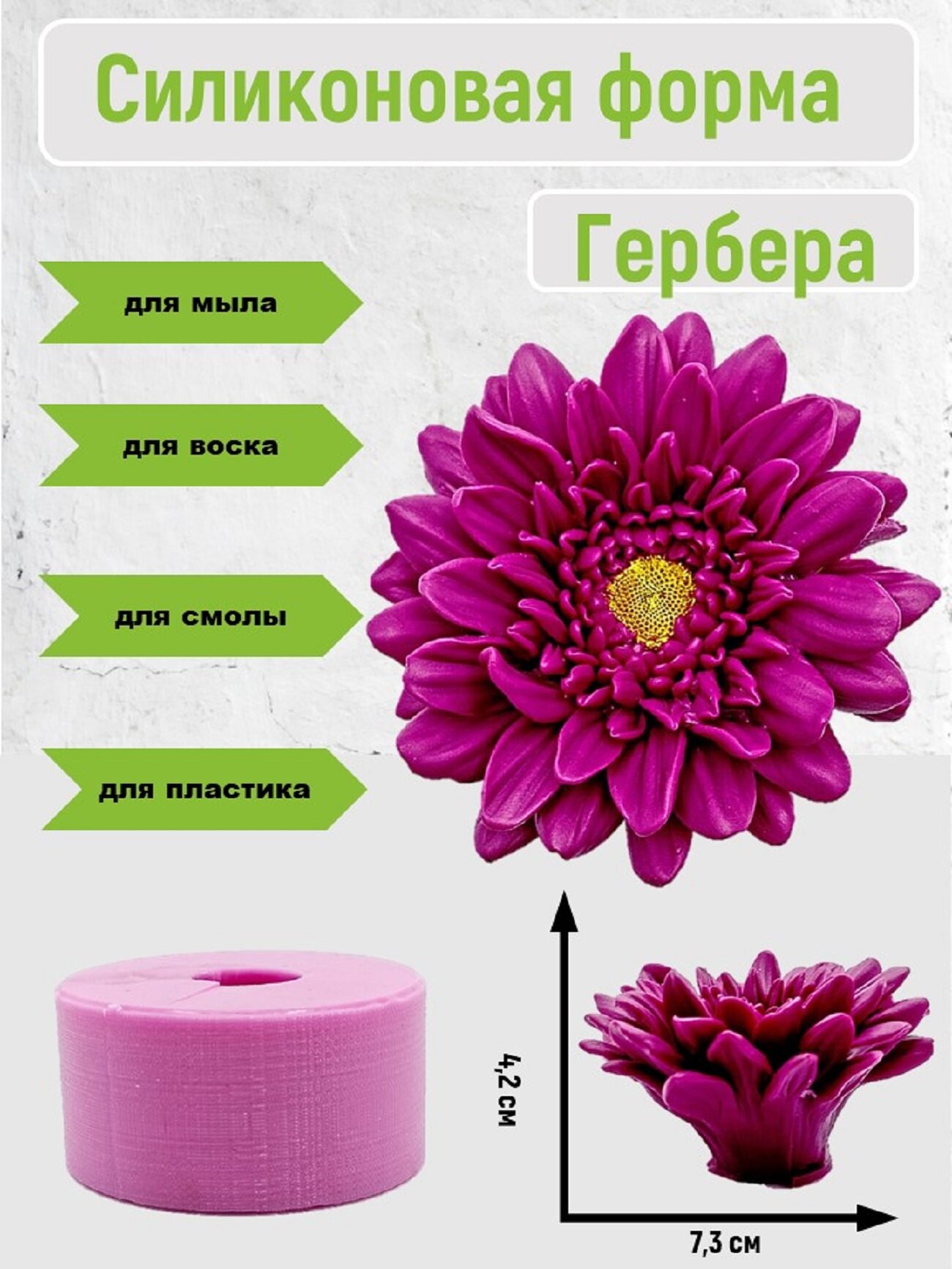 Ниже Вы можете прочитать отзывы на Силиконовая форма для мыла "Гербера" от бренда SMOLA-VRN, ознакомится с подробными характеристиками, посмотреть интересные обзоры и фотографии на Силиконовая форма для мыла "Гербера" от бренда SMOLA-VRN.