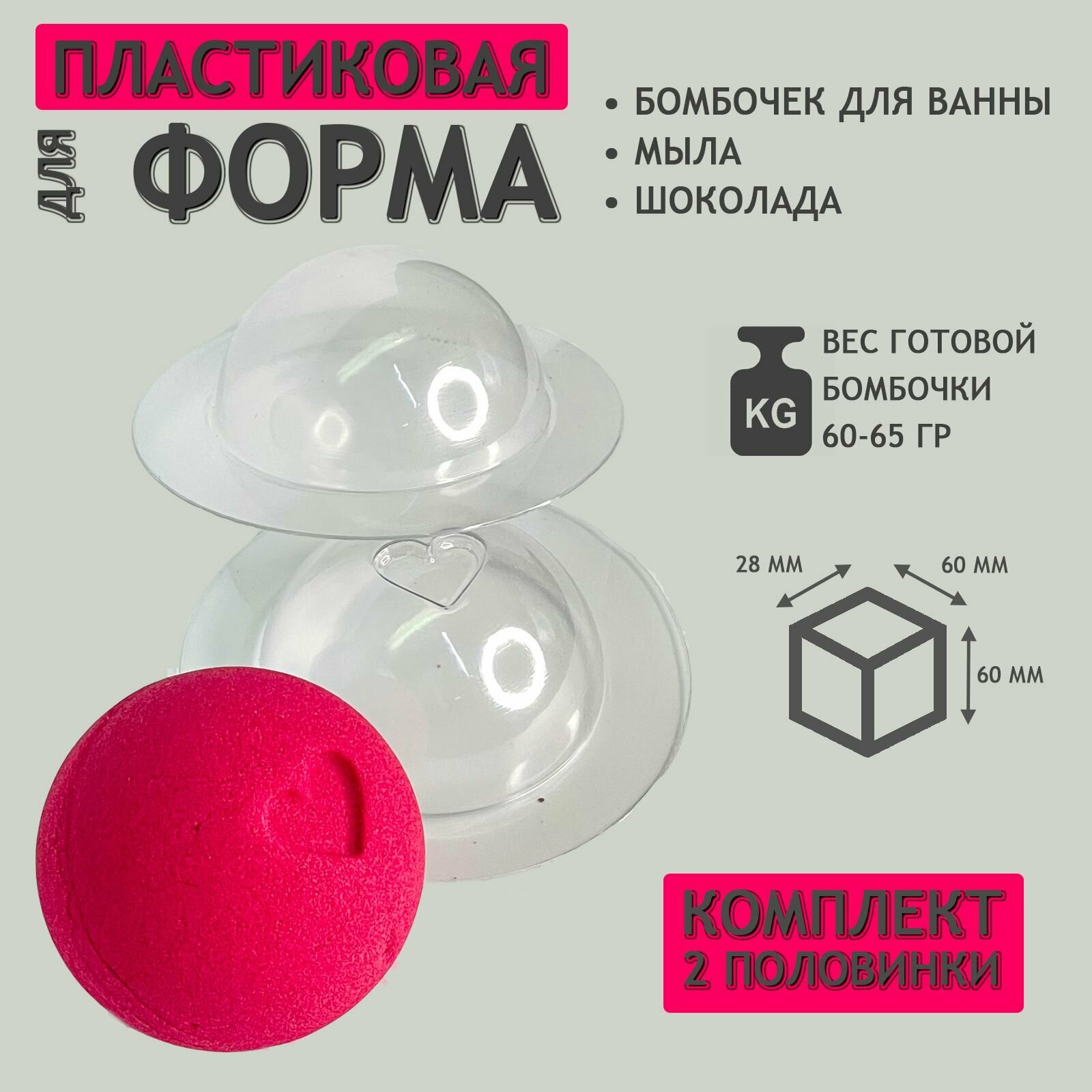 Полусфера d 60 с сердечком. Форма для бомбочек для ванны комплект интересное: