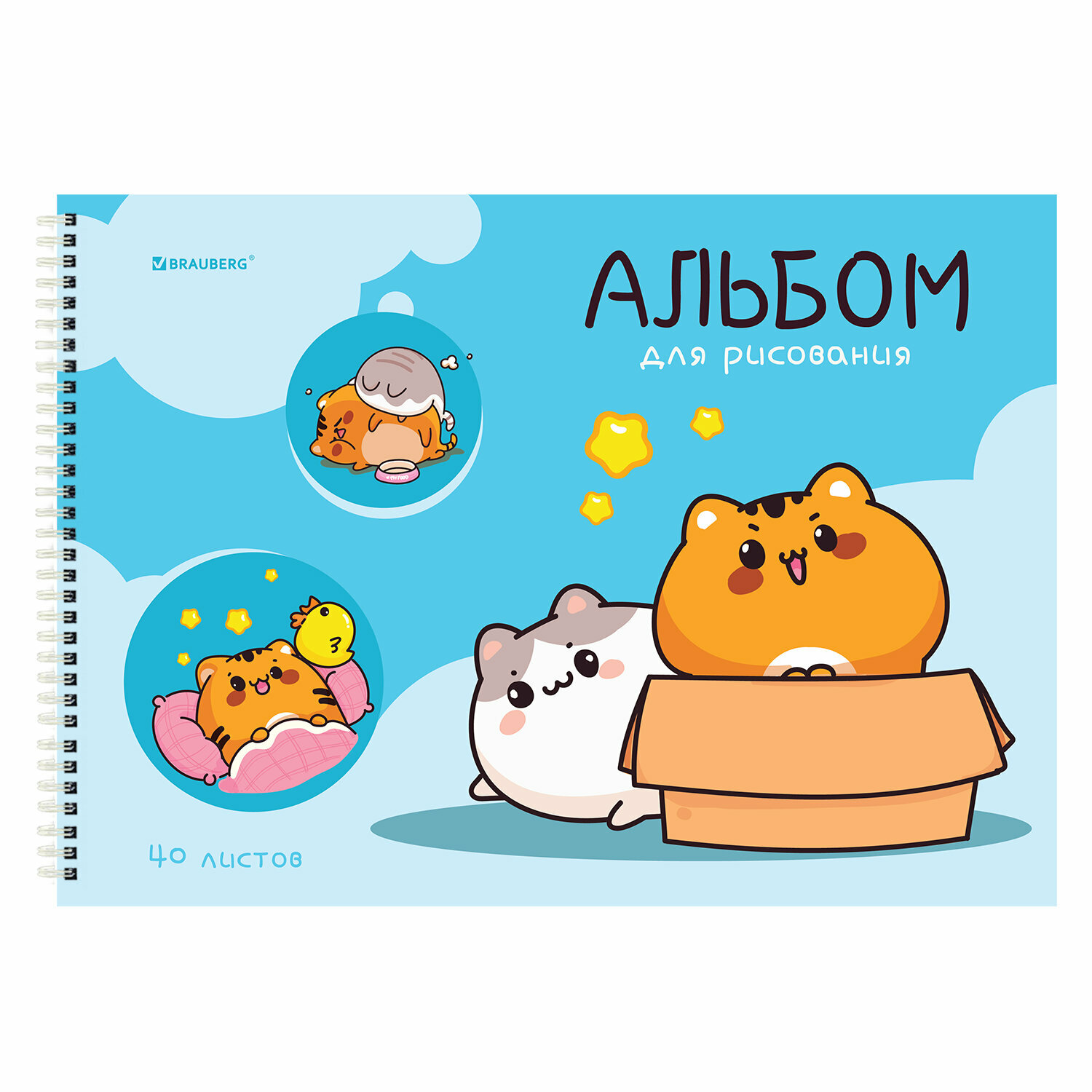 Альбом для рисования в школу А4 40 листов на спирали, набор 2 штуки, обложка картон, Brauberg Котики