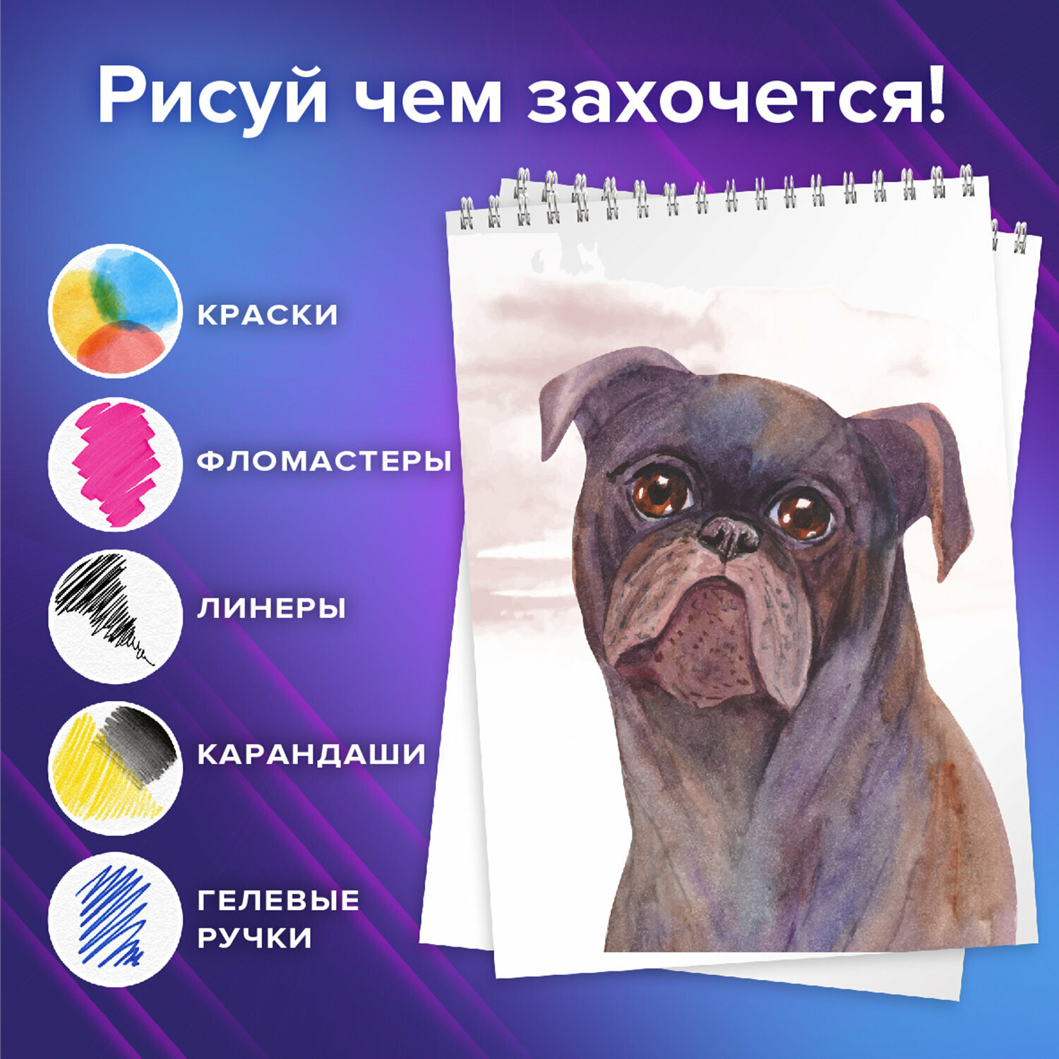 Альбом для рисования в школу А4 40 листов на спирали, набор 2 штуки, обложка картон, Brauberg Dog Бобик, 107014