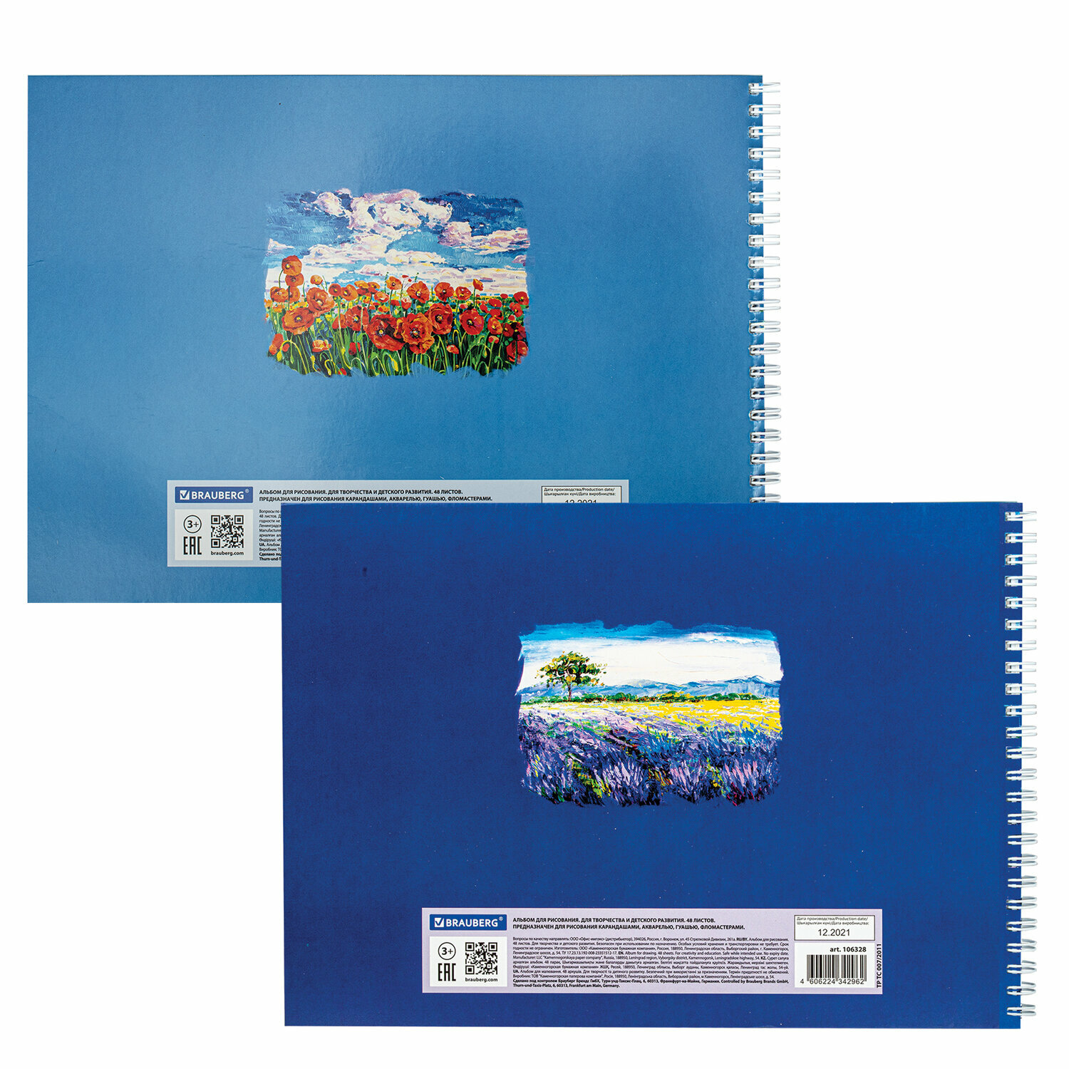 Альбом для рисования 40 листов А4 на спирали, комплект 2 штуки, обложка картон, Brauberg, 205х290 мм, Соцветие, 106737