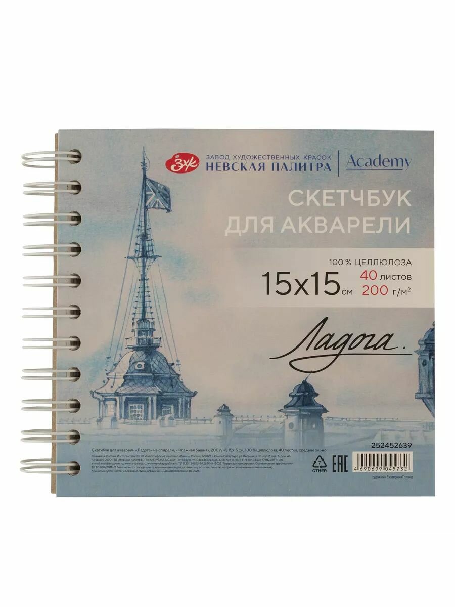 Скетчбук для рисования Невская палитра Ладога "Башня", 15х15 см, 100% целлюлоза, 40 листов интересное: