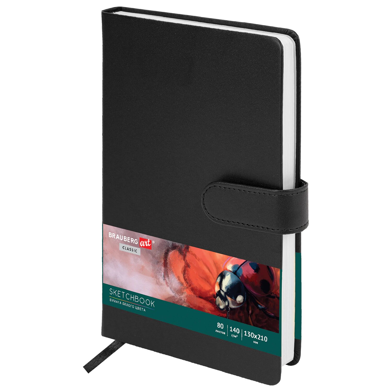 Скетчбук, белая бумага 140г/м 210х148мм, 80л, кожзам, резинка, BRAUBERG ART CLASSIC, черный, 113182