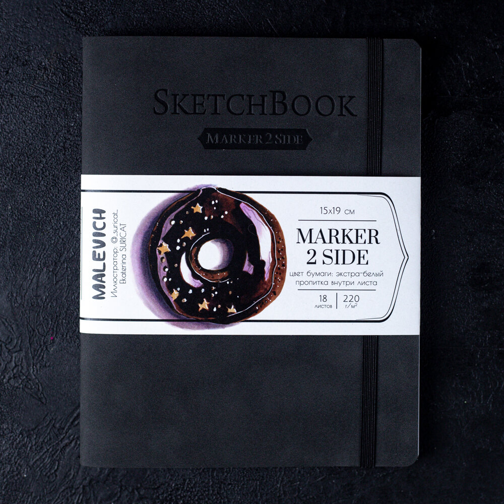 Купить Скетчбук Малевичъ для маркеров Markers, мокрый асфальт, 220 г/м, 15х20 см, 18л