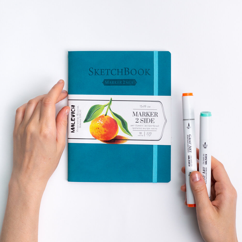 Купить Скетчбук Малевичъ для маркеров Markers, бирюзовый, 220 г/м, 15х20 см, 18л