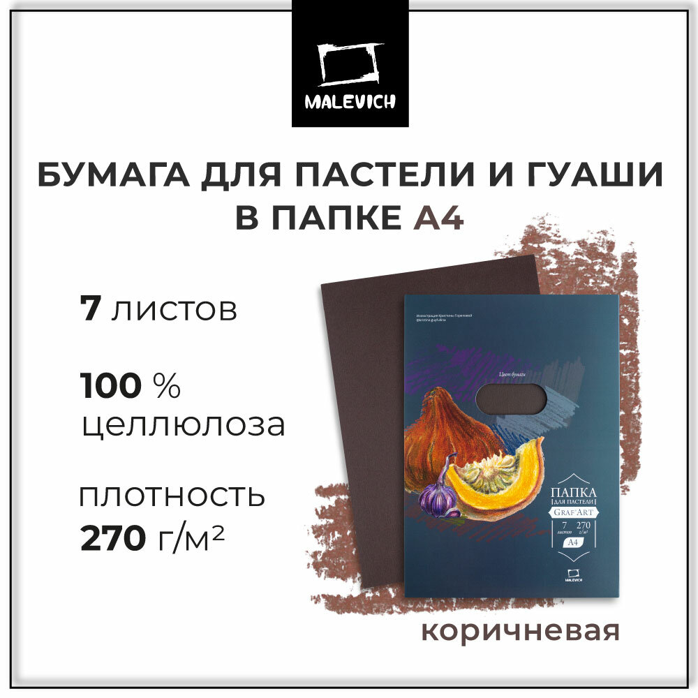 Бумага для пастели А4 в папке, коричневая, 270 г/м, 7 листов интересное: