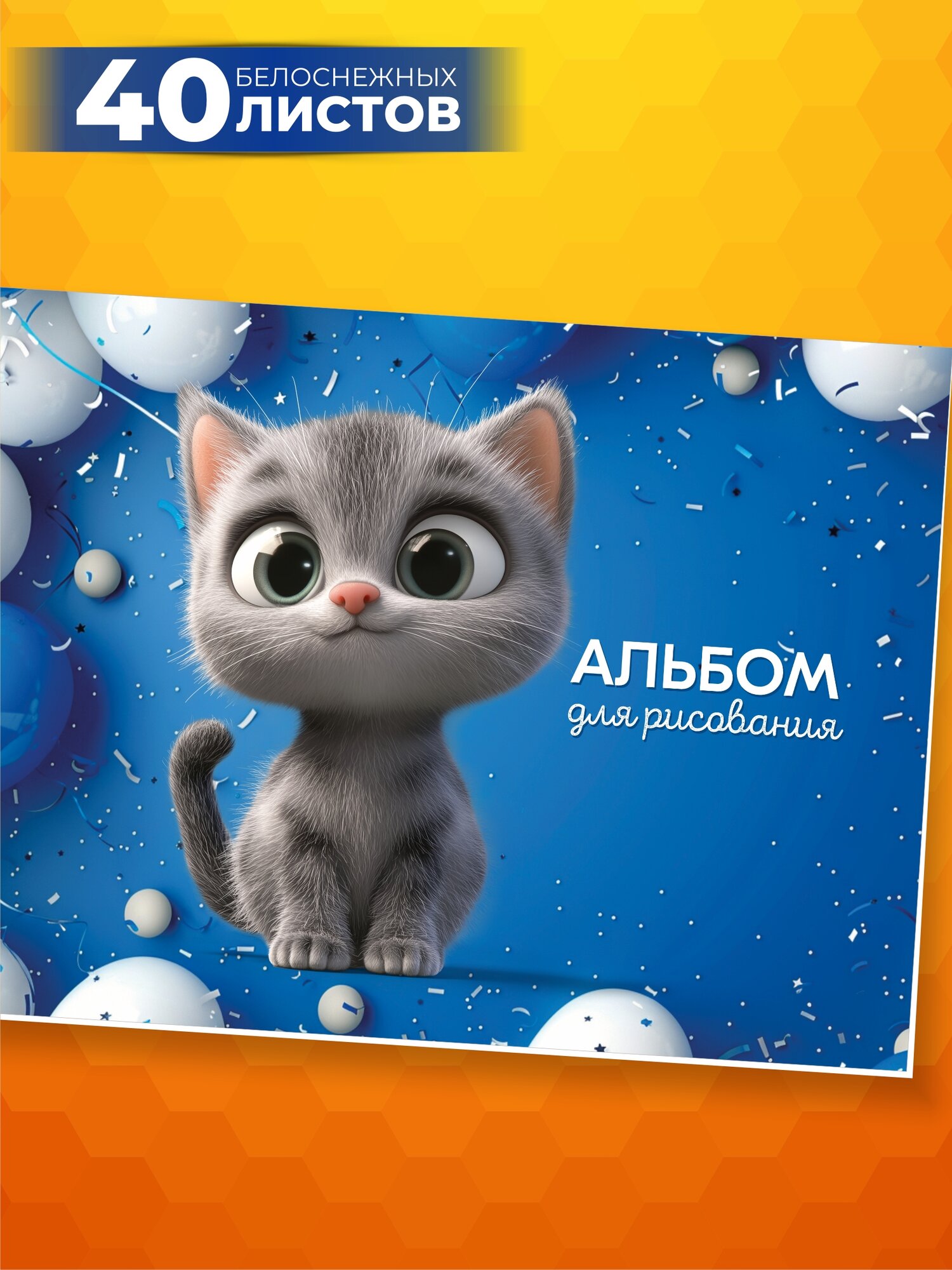 Альбом для рисования "Котики" от бренда Типография "ТМТ", набор из 2 шт, формат А4, 40 листов
