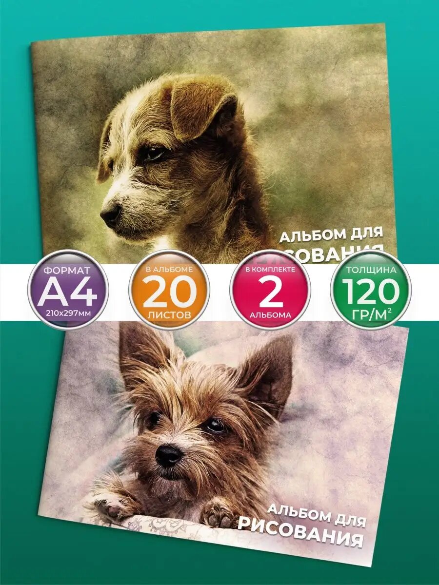 Купить Альбом для рисования "Щенки" от бренда Типография "ТМТ", набор из 2 шт, формат А4, 20 листов