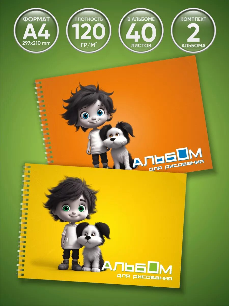 Купить Альбом для рисования "Мальчик с собакой" от бренда Типография "ТМТ", набор из 2 шт, формат А4, 40 листов