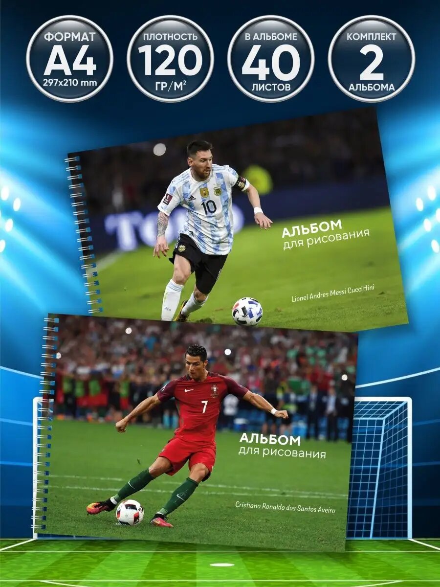 Купить Альбом для рисования "Футбол" от бренда Типография "ТМТ", набор из 2 шт, формат А4, 40 листов