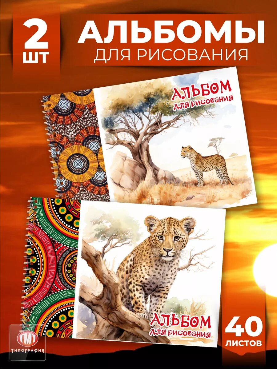 Купить Альбом для рисования "Леопард" от бренда Типография "ТМТ", набор из 2 шт, формат А4, 40 листов